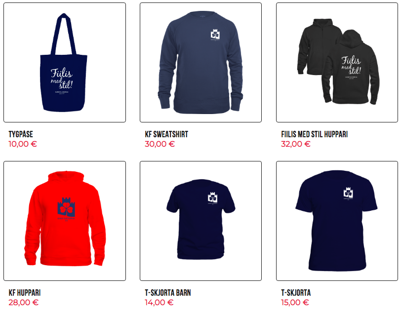 Därtill finns naturligtvis en uppdaterad version av den traditionellt röda ”KF-hupparin” samt en svart modell med dragkedja med KF:s slogan ”Fiilis med stil” tryckt över ryggen.