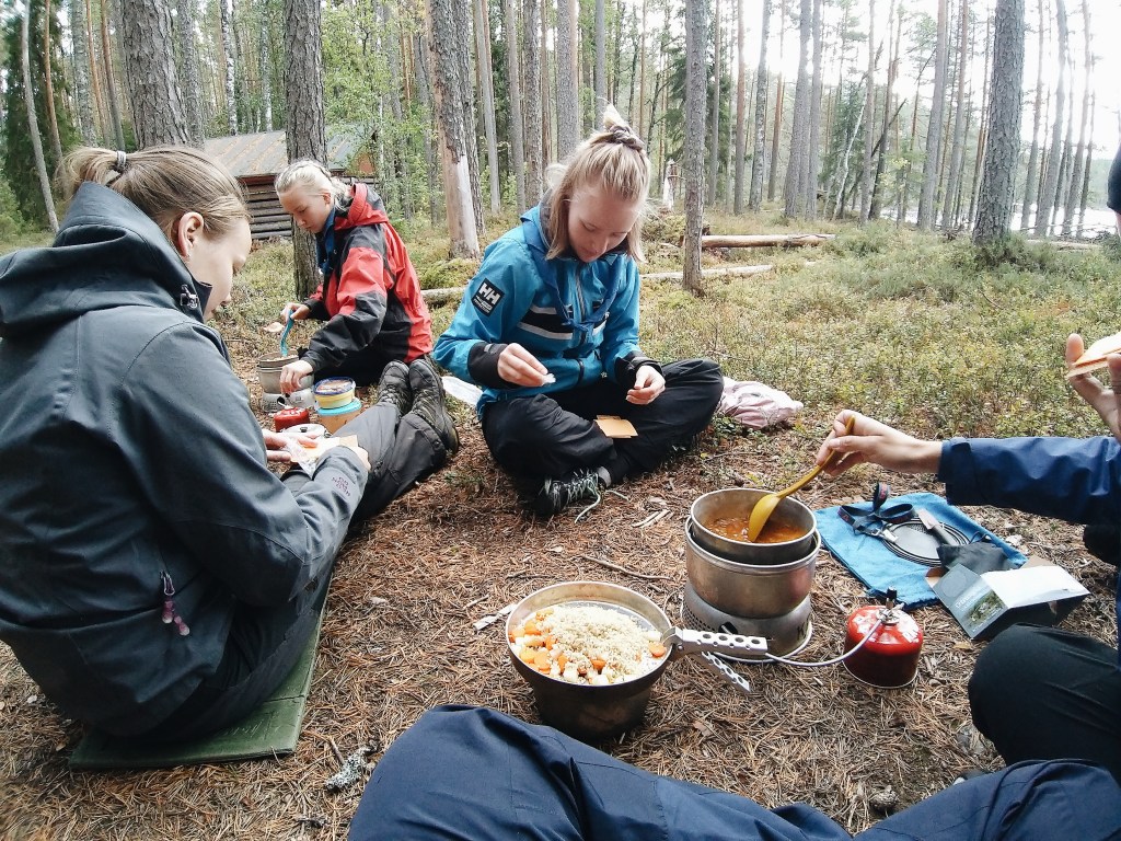 Då vi kom till Helvetinjärvi lagade vi lunch vid vår stuga, Hiedan Maja.